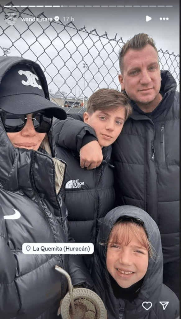 Wanda publicó una imagen que años atrás era imposible. Se sacó una selfie abrigadísima junto a Maxi López, a uno de los nenes que tuvo con él y a una de las hijas que tuvo con Mauro Icardi. Todos fueron hasta “La Quemita”, el lugar en donde jugó Valentino.