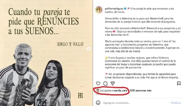 El posteo apuntaba directamente a la mamá de Olivia y Benjamín y a Enzo Fernández, ya que el futbolista le habría pedido que abandone la competencia y regresara a Inglaterra. La publicación en cuestión reflexionaba sobre la decisión tomada. “Si tu pareja te pide que renuncies a tus sueños, ahí no es…”, escribió la psicóloga Florencia Rodríguez en el primer párrafo del texto.