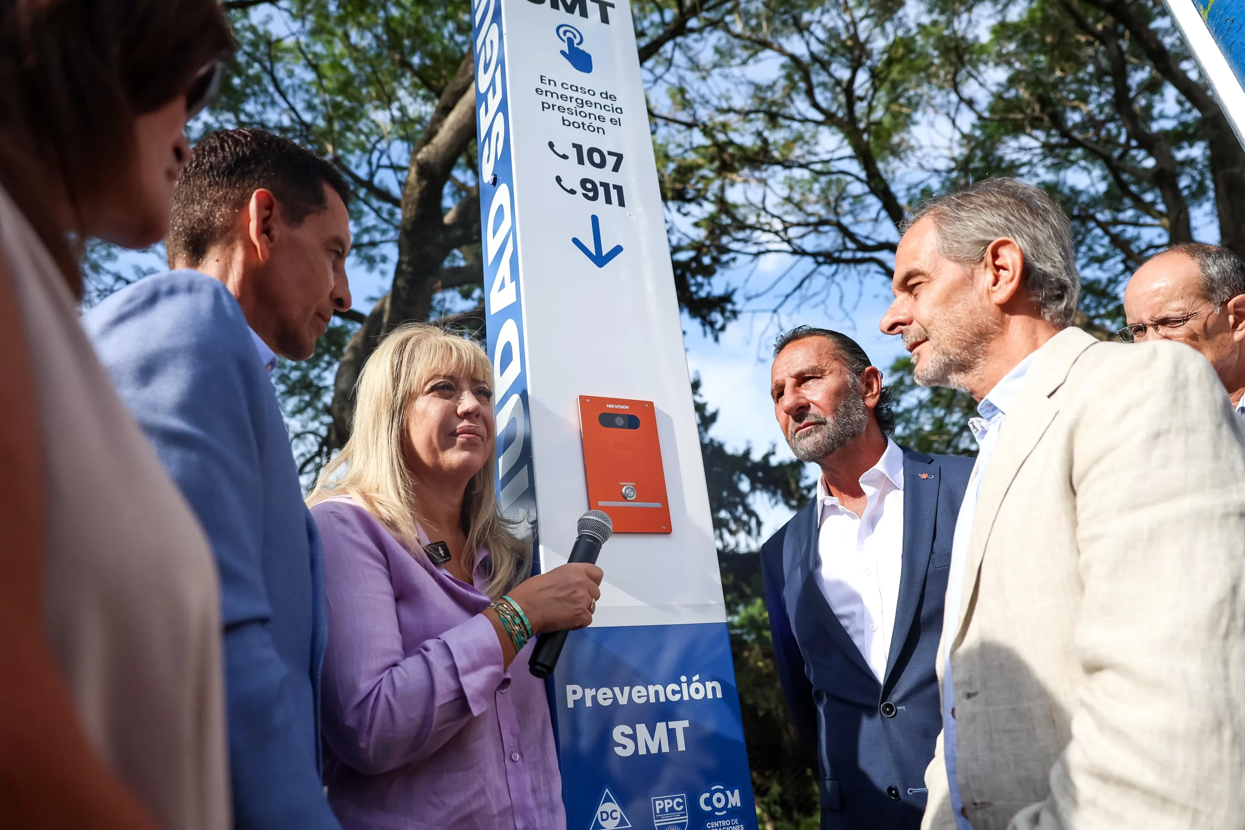 En avenida Kirchner al 1.800 y 2.100, la Municipalidad capitalina instaló paradas seguras equipadas con tres tótems inteligentes, que cuentan con botones antipánico y cámaras de seguridad, para comunicarse las 24 horas con personal del Centro Operativo de Monitoreo del Municipio (COMM) y solicitar su intervención. Los agentes se comunican con la PPC, el 911 o el 107 según lo requiera la situación y asisten a la persona que activó el llamado. El botón se puede utilizar, por ejemplo, en casos de siniestros o robos; en una situación de acoso callejero; o ante la detección de cualquier vehículo o actitud sospechosa, para solicitar asistencia inmediata.