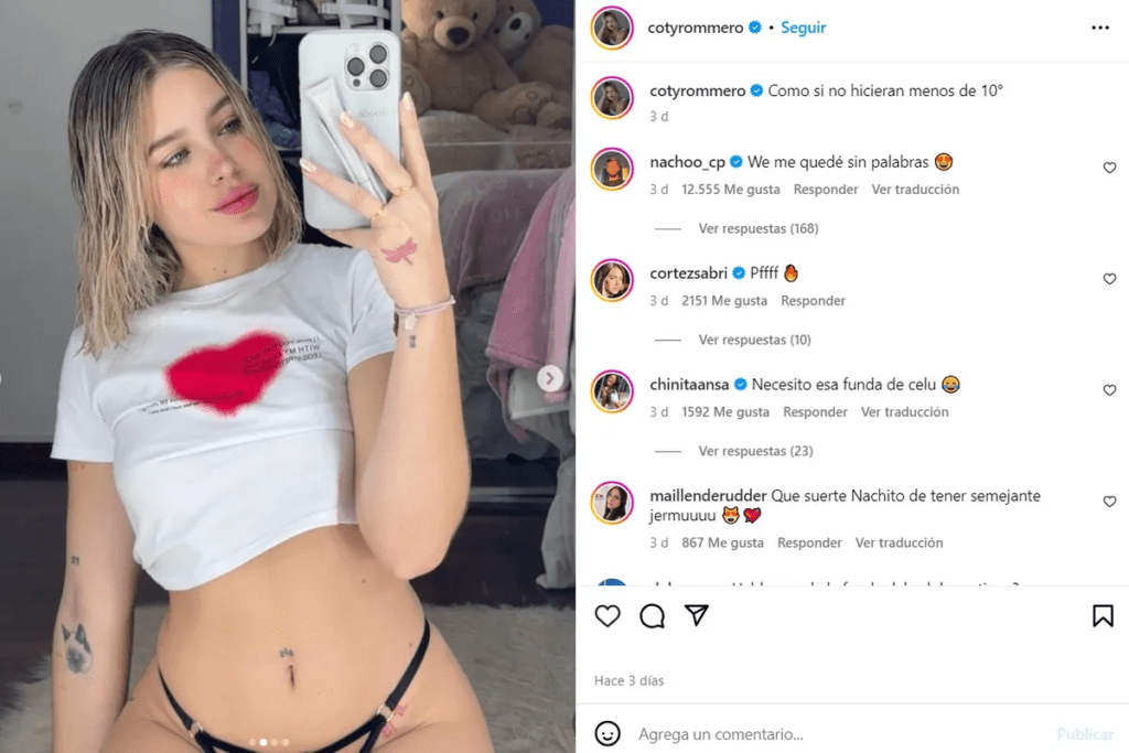 A lo que Nacho Castañares comentó maravillado por la figura de Coti: «We. Me quedé sin palabras», expresó con el emoji de cara de enamorado.