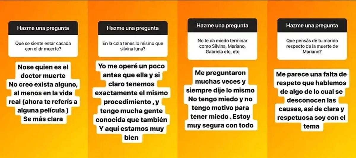 “¿Qué se siente estar casada con el Dr. Muerte?” preguntó directa una seguidora en clara referencia a Lotocki y sus dudosos procedimientos quirúgicos. Pero Favarón intentó esquivar el asunto con evasivas, respondiendo: “No sé quién es el Doctor Muerte. No creo exista alguno, al menos en la vida real. (Ahora, te referís a una película) Sé más clara”.