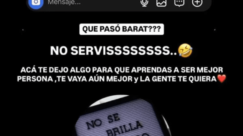 «¿Qué pasó barat? No servís. Acá te dejo algo para que aprendas a ser mejor persona, te vaya aún menor y la gente te quiera: ‘No se brilla apagando a los demás'», fue la chicana de L-Gante para Alex Caniggia.