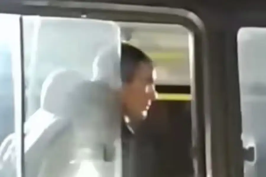 Las imágenes captadas por testigos del hecho muestran cómo un hombre volvió a subir al interno y golpeó al acusado, mientras desde la calle los vecinos le gritaban: “Por tu bien, quédate ahí adentro”.
