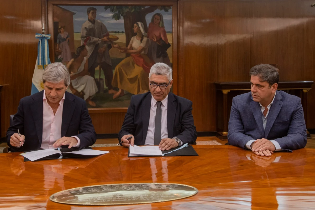 El ministro de Economía de la Nación, Luis Caputo, y su par tucumano, Daniel Abad, se reunieron este miércoles en Buenos Aires para celebrar un acta que fija las pautas para la tenencia del inmueble de casi 100 hectáreas, lindante al barrio Manantial Sur. Del encuentro también participó el jefe de Gabinete de Interior de la Nación, Lisandro Catalán.