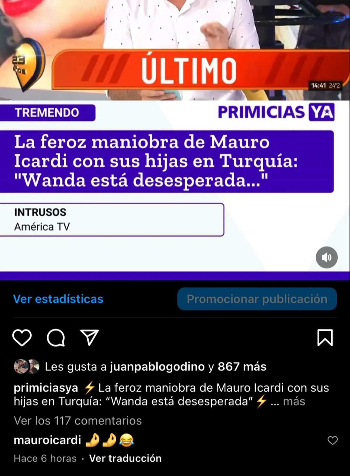 Ante los trascendidos, Mauro comentó directamente una de las noticias que publicó este portal, y en el Instagram de PrimiciasYa, el ahora ex de Wanda dijo lo suyo.