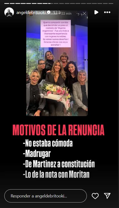 Por otra parte, Ángel de Brito sumó su información sobre el tema y compartió que los motivos de la renuncia se deben a que Evelyn “no estaba comoda”, no le gustaba madrugar y que tenía un largo viaje desde Martínez hasta Constitución, donde se encuentran los estudios de Artear.