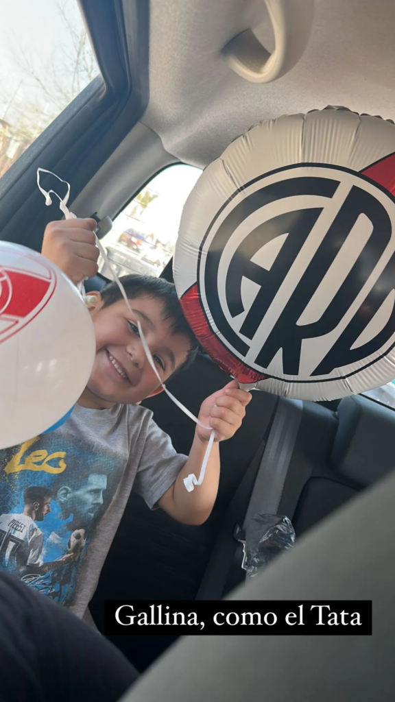 El conductor de Argenzuela publicó en sus historias de Instagram varias fotos del hijo de Morena Rial. En la primera, Francesco sostiene unos globos de River Plate, el equipo del que es hincha el periodista. «Gallina, como el tata», escribió sobre la imagen. En la segunda, está en un sillón con el perro de Rial y, en la tercera, se los ve a los dos sonrientes, muy felices.