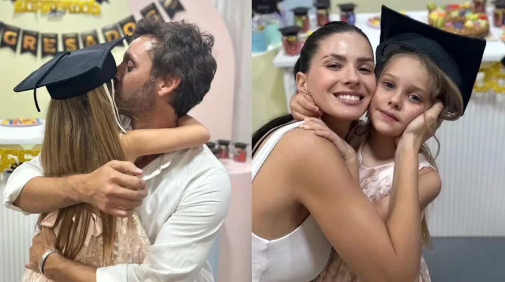 “Mi pequeña egresada”, escribió el galán chileno, en la imagen que compartió mientras le da un beso y un abrazo a la nena. La actriz, por su lado, compartió otra postal muy parecida con su hija, en la que agregó un emoji de una carita llorando de la emoción.