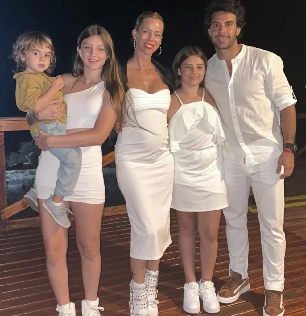 La jurado de Los 8 escalones (eltrece) compartió una postal de su celebración de Año Nuevo junto al automovilista y dos de sus hijas, Allegra y Sienna. Desde Las Grutas, la familia posó con looks total white y Neumann lució su pancita de embarazada. Pero, la gran ausente fue su hija mayor que, según se pudo confirmar con una tierna foto prefirió estar acompañada por la familia de su papá.