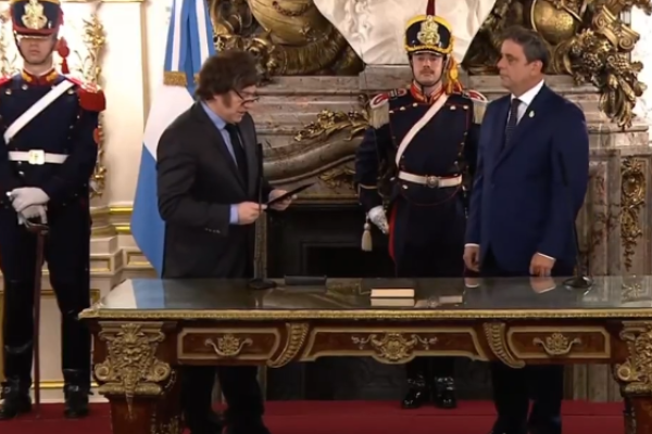 Catalán juró este mediodía en el Salón Norte en una breve ceremonia con la presencia de su círculo más cercano y, de esta forma, el Poder Ejecutivo instrumentó la creación del Ministerio del Interior contemplada en el decreto de Necesidad y Urgencia (DNU) número 658/2025.