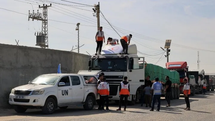De acuerdo a las autoridades egipcias, los vehículos llevaron medicinas e instrumentos médicos, cinco comida y dos agua potable. Ninguno ingresó combustible, necesario para restablecer el suministro eléctrico.