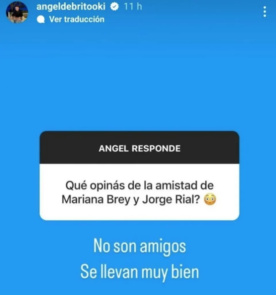 «¿Qué opinás de la amistad de Mariana Brey y Jorge Rial?», y sin dudarlo Ángel dejó ver que entre ellos hay algo más que compañerismo o una mera amistad.