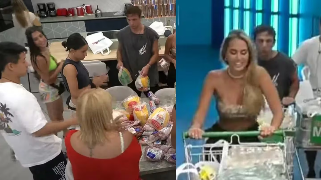 “Quiero ver el precio”, comentaron. “No, mirá esto. Una luca y media”, lanzó Furia mientras levantaba una bandeja. “Trajeron jamón, eso sale caro”, se escuchó opinar a otra participante.