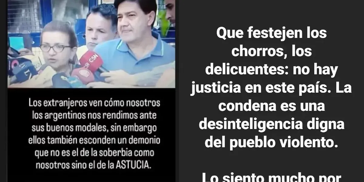 “La gente violenta no quería justicia, quería más violencia, por eso ahora están conformes con la condena porque quieren que sufran los pibes y sus familias”, reflexionó en su cuenta de Instagram.
