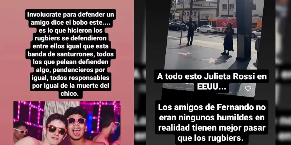 Además, también apuntó contra Julieta Rossi, la novia de Fernando, que está estudiando baile en Estados Unidos: “Los amigos de Fernando no eran ningunos humildes en realidad tienen mejor pasar que los rugbiers”.