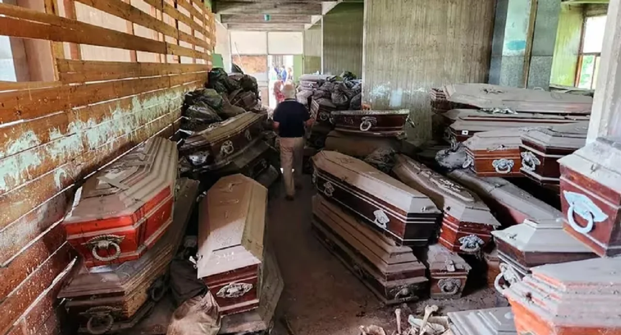 El hallazgo se dio en cuatro lugares diferentes, donde había ataúdes apilados y hueso en el sueño. En algunos cajones estaba escrita la palabra “angelitos”, por lo que determinaron que se trataban de niños, específicamente 22.