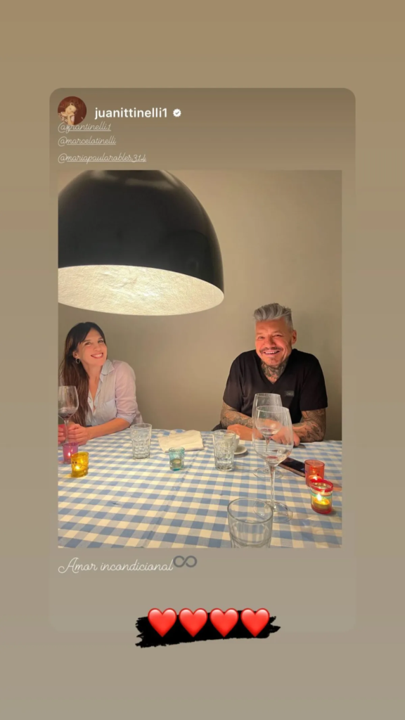La tierna imagen de lo que parece ser una cena la subió a Instagram su hija menor, Juanita Tinelli. “Amor incondicional”, escribió la modelo sobre la foto.