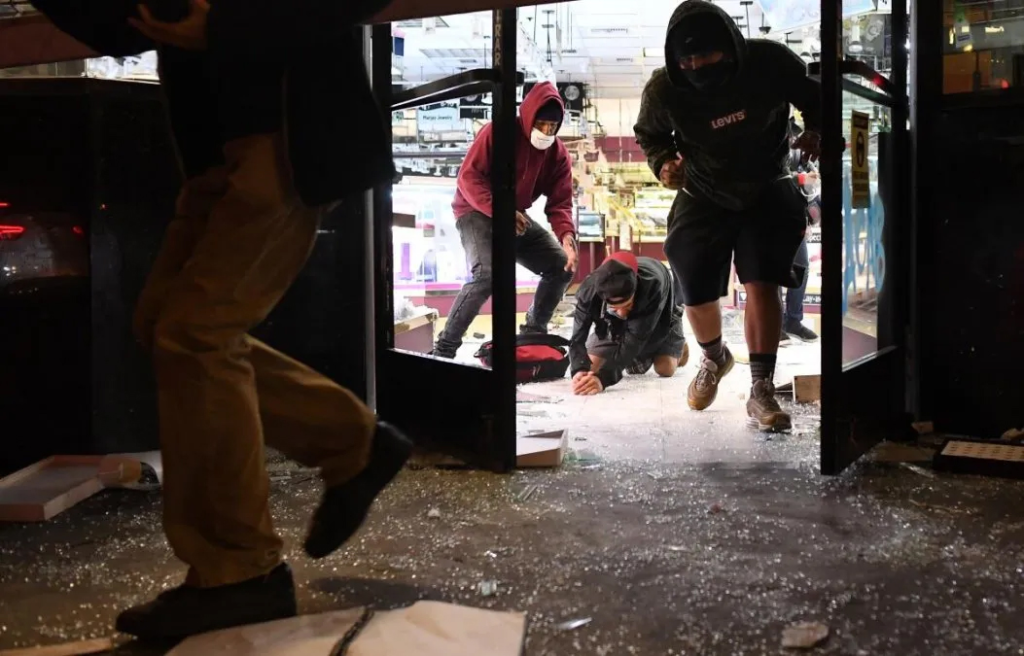 En varias filmaciones se puede observar a un grupo de jóvenes entrando a la fuerza en varias tiendas del área central de la ciudad, como Footlocker, Apple Store y Lululemon, donde arrasaban con lo que iban encontrando a su paso.
