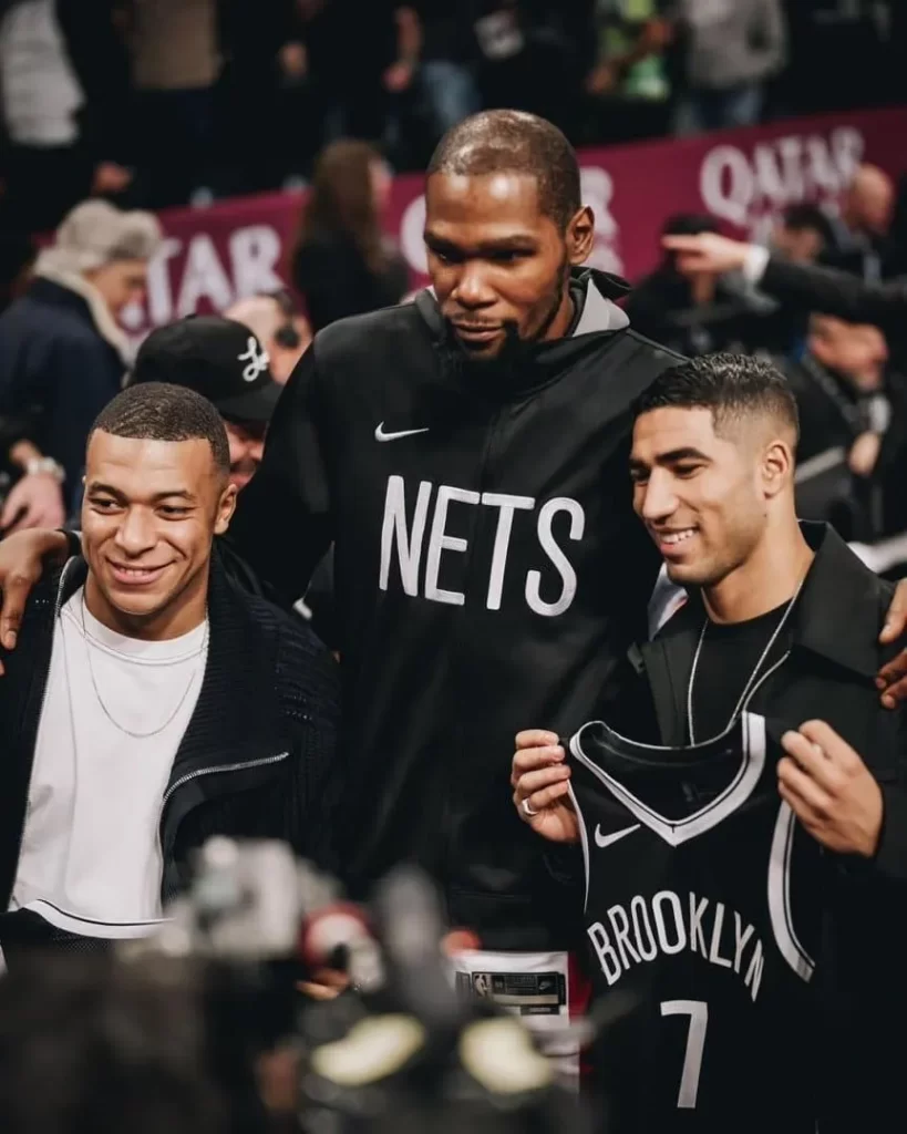 Desde las redes oficiales de la NBA compartieron el encuentro entre Durant, Hakimi y Mbappé en el Barclays Center y el regalo de las camisetas de una de las máximas estrellas de la mejor liga de básquet del mundo.