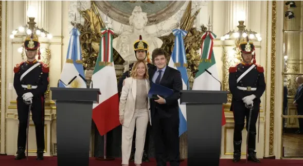 «Gracias al Presidente @JMilei y al pueblo argentino por su cálida hospitalidad. Una preciosa oportunidad para fortalecer el vínculo entre nuestras naciones y compartir una visión común de libertad, soberanía y progreso», celebró la dirigente italiana.