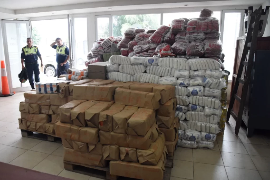 Esta semana, durante un allanamiento por una denuncia sobre violencia, los agentes de la seccional 15 de la Policía se dieron con un cargamento de comestibles en una vivienda de Manantial Sur. Se estima que había más de 5.200 kilos de productos, entre ellos, cajas de leche con la leyenda “prohibida su venta”. Además, en el inmueble había un cuaderno con anotaciones manuscritas que hacen presumir sobre la venta de al menos parte de esa comida; por ejemplo, un listado que enumera fardos de fideos, yerba mate, harina, puré de tomate y otros alimentos, por más de $220.000. En esa hoja, además, se menciona un comercio que estaría situado en la zona del vecindario.
