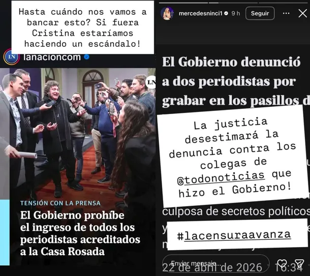 La decisión del gobierno de Javier Milei de cerrar la Sala de Prensa de Casa Rosada tomó por sorpresa a los periodistas acreditados, tanto locales como extranjeros, y a lo largo de la jornada se escucharon críticas de todo tipo, incluida la de Mercedes Ninci,que acercó una reflexión inesperada en ella.