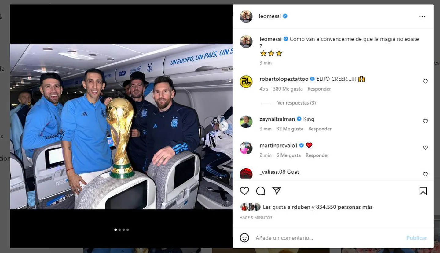 En apenas cuatro días Lionel Messi reaparecerá en el PSG y se pondrá en modo temporada europea pero hasta hoy el delantero rosarino sigue conmovido con la conquista del Mundial Qatar 2022 con la Selección argentina y lo dejó en claro con una publicación en sus redes sociales en la que usó la palabra “magia” para dar cuenta de esa ilusión que se hizo realidad.