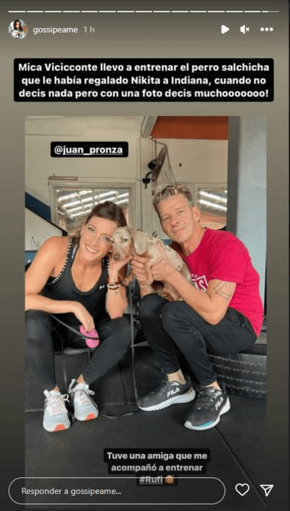 “Mica Viciconte llevó a entrenar el perro salchicha que le había regalado Nikita a Indiana. Cuando no decís nada, pero con una foto decís mucho”, opinó la influencer especialista en farándula.
