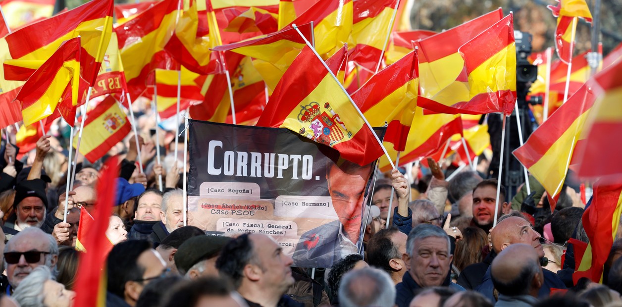 Motivada por la entrada en prisión del ex ministro de Transportes de Sánchez por presunta corrupción, la manifestación del PP rodeó el templo de Debod, un santuario egipcio que curiosamente adorna el parque a pocas cuadras de la sede nacional del Partido Socialista Obrero Español (PSOE) que lidera el presidente de la nación.