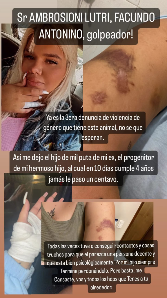 Y agregó: “Por mi hijo siempre terminé perdonándolo. Pero basta. Me cansaste vos y todos los hijos de puta que tenés a tu alrededor. Hacete el vivo nomás, cagón y golpeador. De tal palo, tal astilla”. Por último, le pidió que le devolviera los 20 mil dólares que le habría robado, y expuso que el futbolista también se ensañaba con Francesco Benicio. “A él también le pegás. Cuando está con vos quiere volverse a mi casa. Sos un asco de padre y persona. Muerto de hambre”, cerró furiosa.