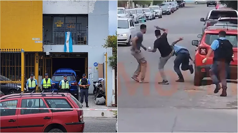 Según se pudo ver en un video viral, familiares y compañeros de trabajo de la víctima atacaron al policía, que iba de uniforme. Un hombre le propinó una trompada que lo hizo caer al piso y otro le dio una patada voladora en la espalda.