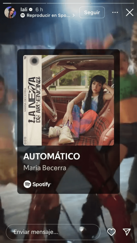 Como no podía ser de otra manera, Lali Espósito se metió en el conflicto y defendió a su colega con un particular gesto: publicó en sus historias de Instagram «Automático», la famosa canción de María Becerra, como si le estuviera haciendo propaganda.