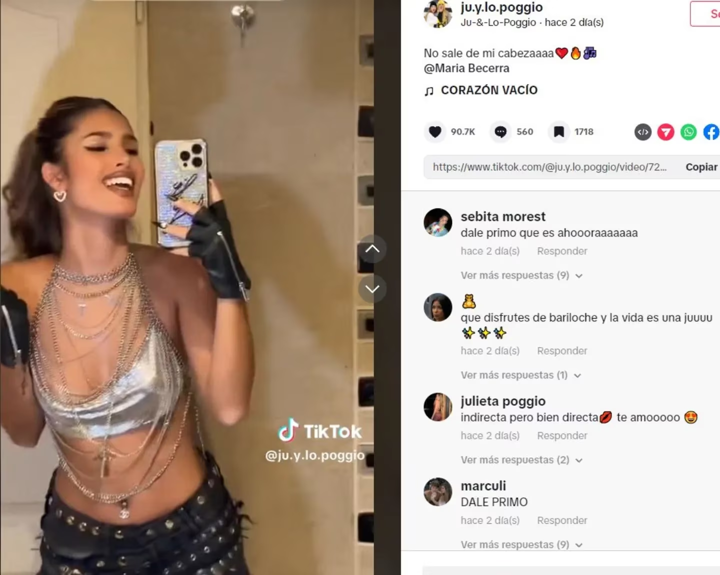 Julieta Poggio enloqueció a sus seguidores con una frase que publicó en su cuenta de TikTok. Es que varios de sus fanáticos entendieron las palabras de la modelo como una indirecta para Marcos Ginocchio, lo que alimentó aún más los rumores de que hay amor entre ellos.