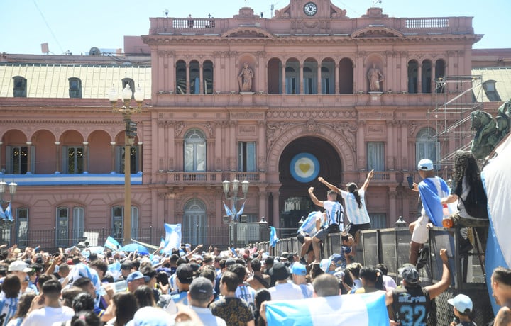 Ya en el aire, a 10.000 metros de altura, el presidente de la AFA, Claudio Tapia, había sondeado el humor de los futbolistas: le llegaban a su teléfono las invitaciones informales para que los campeones llevaran a la Casa Rosada la Copa del Mundo y tuvieran el saludo simbólico al pueblo desde el balcón. La foto de Diego Maradona en el 86 y la de Messi, 36 años después, entusiasmaba a cualquiera y no había recibido una respuesta negativa.