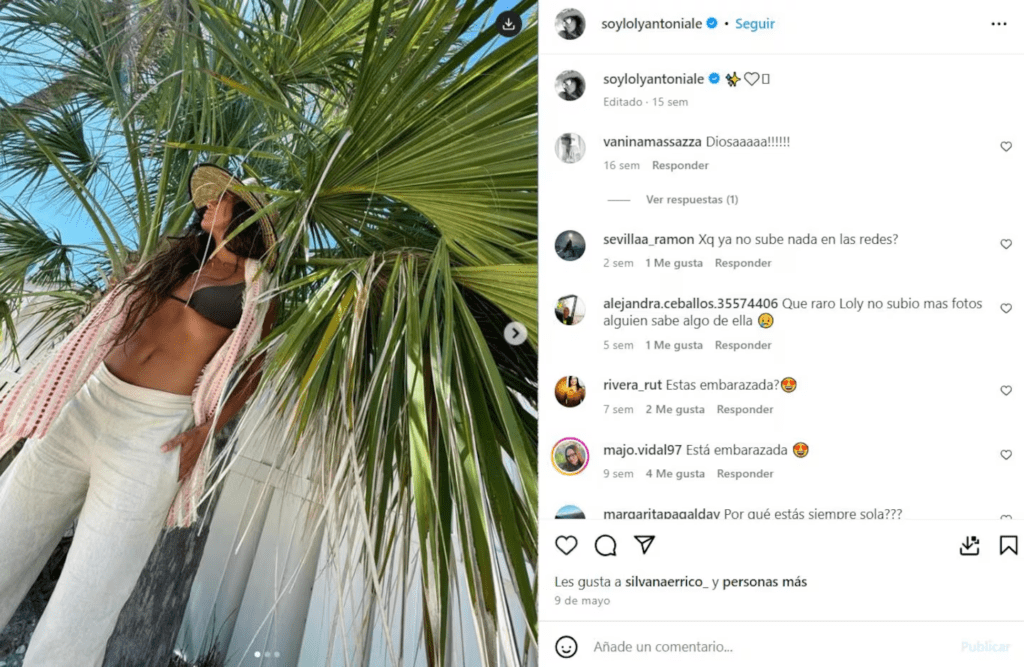 “Qué raro que Loly no subió más fotos. ¿Alguien sabe algo de ella?”, “¿Estás esperando un bebé?”, “Desapareciste del mapa”, “Que alguien averigüe si le pasó algo”, fueron algunas de las inquietudes de los usuarios, que esperan una señal de vida de la cordobesa.