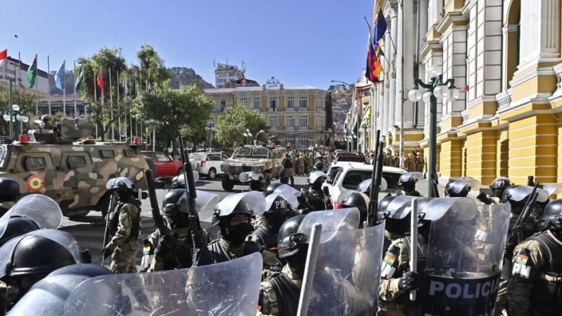 Luego de varias horas de tensión en inmediaciones de la sede gubernamental boliviana, las fuerzas armadas fueron expulsadas de la plaza principal por ciudadanos que se dieron cita voluntariamente en defensa de la institución democrática. Todo comenzó minutos antes de las 17 h y culminó poco antes de las 19 h. Las imágenes de televisión mostraban al menos dos tanquetas militares y un grupo de soldados frente a la Casa de Gobierno de Bolivia, que más tarde llegaron a ingresar al palacio.