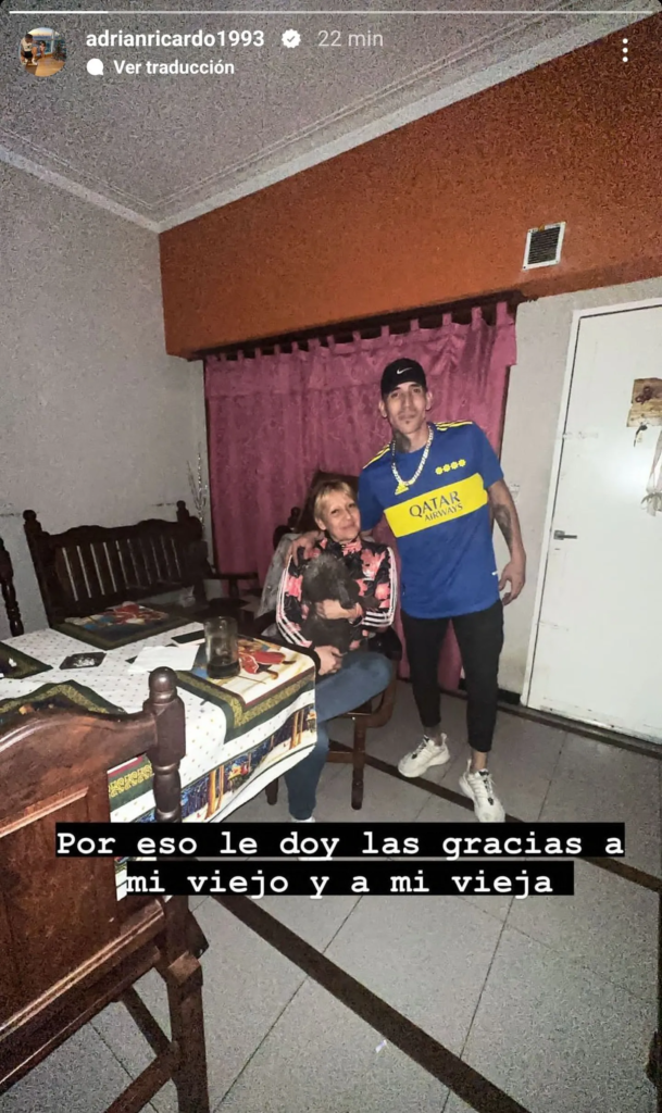 Luego publicó una historia junto a su madre con la camiseta de Boca, más reciente de las que utilizó él cuando era parte del plantel azul y oro, con el siguiente mensaje: “Por eso le doy gracias a mi viejo y a mi vieja”.