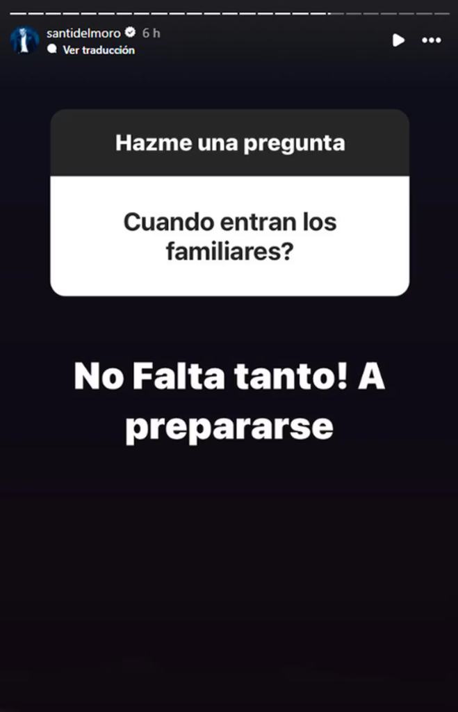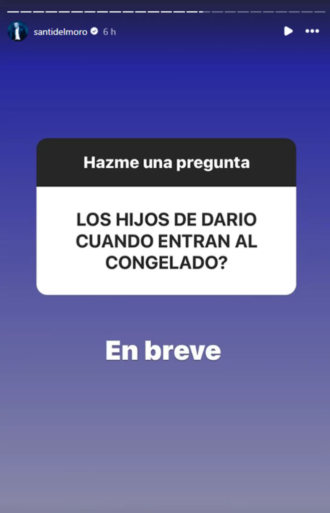 Tanto en X (ex Twitter) como en el sticker de preguntas que subió Del Moro, los usuarios especularon que podría ser Alexis “El Conejo” Quiroga quien entrara a la casa, pero el conductor lo desmintió inmediatamente. Además, adelantó que los hijos de Darío ingresarán “en breve” para el juego del “Congelados”.