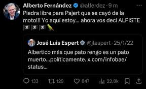 “Piedra libre para Pajert que se cayó de la moto!!! Yo aquí estoy… ahora vos decí ALPISTE”, sentenció Fernández en un mensaje que rápidamente se volvió viral.