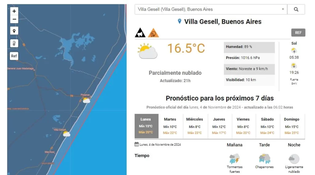 A su vez, hay alerta naranja y el área comprendida de la Costa será afectada por tormentas localmente fuertes o severas: “Las mismas podrán estar acompañadas por ráfagas que pueden alcanzar los 80 km/h, actividad eléctrica importante, ocasional caída de granizo, y principalmente abundante caída de agua en cortos períodos”.