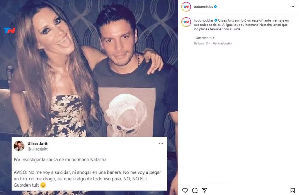 Días atrás, el mediático escribió un mensaje escalofriante. “Por investigar la causa de mi hermana Natacha. AVISO: No me voy a suicidar, ni ahogar en una bañera. No me voy a pegar un tiro, no me drogo, así que si algo de todo eso pasa, NO, NO FUI. Guarden tuit”, sentenció.