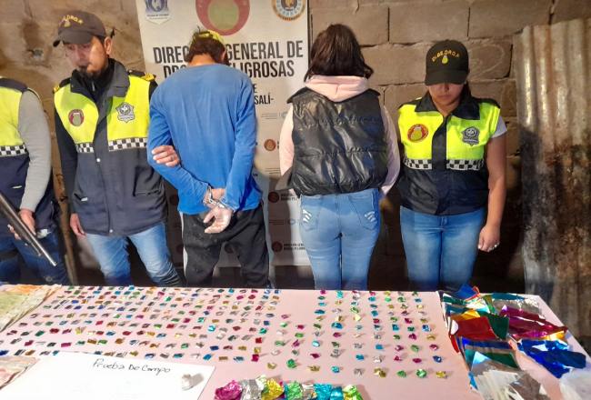 Tras una intensa investigación por narcomenudeo, los efectivos de la División Drogas Peligrosas (Didrop) Este aprehendieron este miércoles a dos personas y secuestraron 300 “ravioles” de cocaína, una piedra de esa sustancia y recortes de papel para sus envoltorios. Además, celulares y dinero en efectivo. Fue en el marco de una medida de allanamiento concretada en una vivienda del Asentamiento Virgen del Rosario de la ciudad de Alderetes.