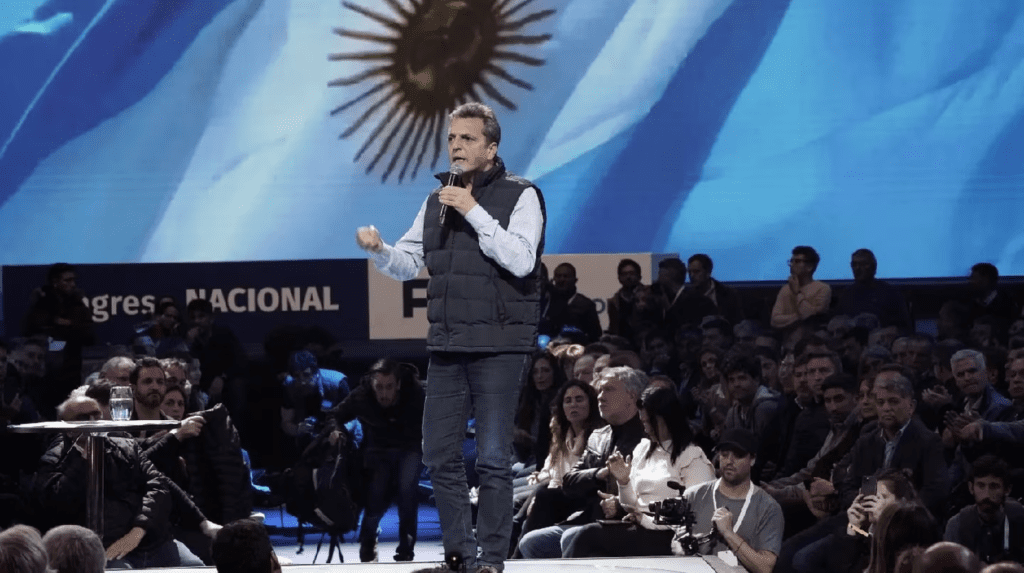 En una muestra de fuerza, Massa llenó de cientos dirigentes partidarios y de funcionarios el estadio Arenas, en el partido de Malvinas Argentinas. Durante el congreso recibió el saludo de decenas de legisladores nacionales, incluido Máximo Kirchner, gobernadores y sindicalistas oficialistas, que su equipo se encargó de hacer trascender.