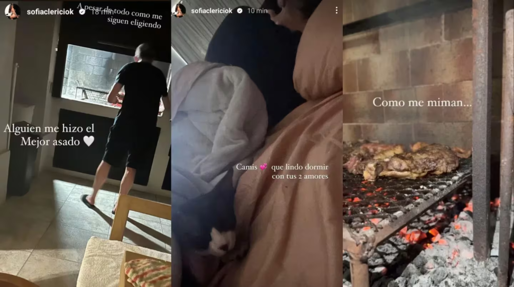 Una de las primeras imágenes que levantó sospechas mostraba a un hombre de espaldas frente a un asador. Seguidamente, publicó una foto donde esta misma persona dormía en su cama. Horas más tarde, ella aclaró los tantos y fotografió al exfuncionario conduciendo un auto en el que ambos viajaban. Para acompañar la imagen, escribió: “Ruta de amor”.