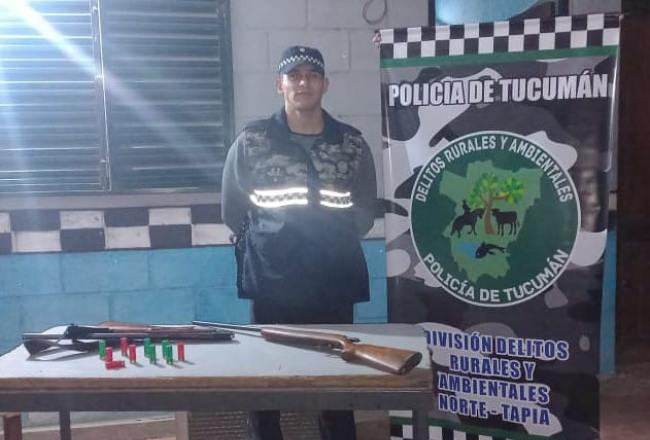 Mientras realizaban recorridos y controles preventivos en la localidad de Ticucho, los efectivos de la División Delitos Rurales y Ambientales N°4 Norte-Tapia sorprendieron este martes a un hombre de 58 años y a su hijo, de 26, cazando en la zona sin documentación habilitante para realizar esta actividad. Ambos se encontraban en un camino colindante con la ruta provincial N°312, departamento Trancas.