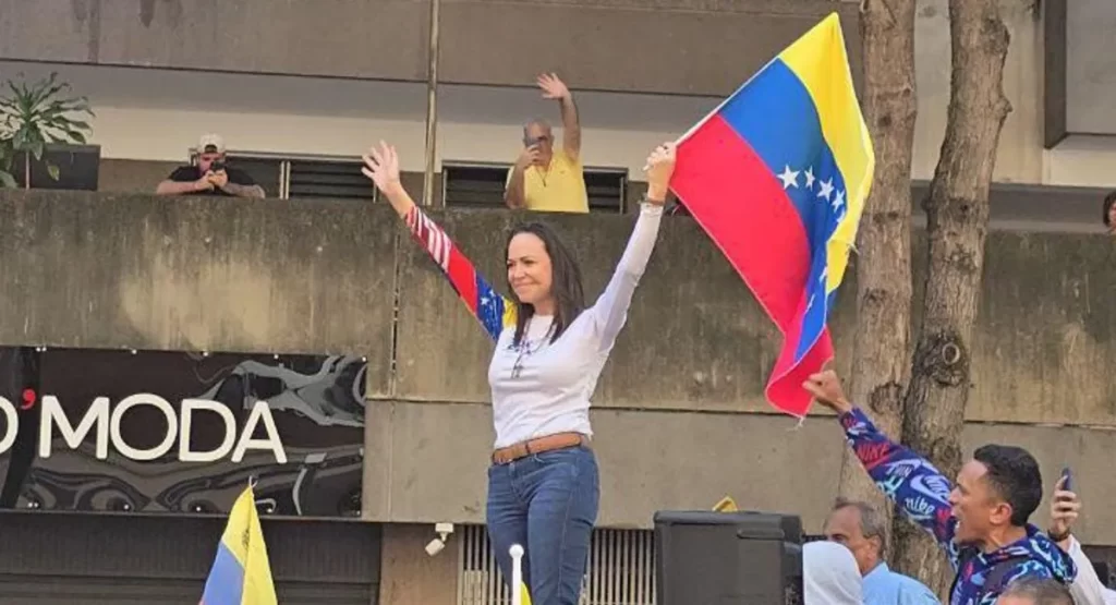 La opositora había prometido que saldría de la clandestinidad para acompañar a los venezolanos en esta protesta antes de la juramentación de mañana. «Lo dijimos, hoy nos encontrábamos en todas las calles de Venezuela y el mundo. Yo estoy aquí, contigo, y hasta el final», escribió en su cuenta de la red social X (antes llamada Twitter).