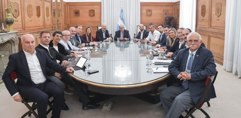 El encuentro tuvo lugar este miércoles por la tarde en el Salón de los Escudos de Casa Rosada donde el anfitrión, Guillermo Francos, recibió a una delegación de diputados del partido amarillo y también de la Libertad Avanza. El jefe de Gabinete estuvo acompañado por el ministro de Desregulación y Transformación del Estado, Federico Sturzenegger, y de otros funcionarios, como el vicejefe de Gabinete Ejecutivo, José Rolandi.