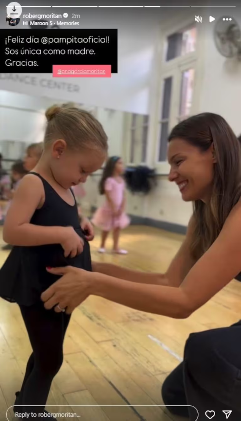 Roberto García Moritán saludó a Pampita Ardohain por el Día de la Madre a través de las redes. El exfuncionario compartió una historia en el que la modelo aparece abrazando a su hija Anita.