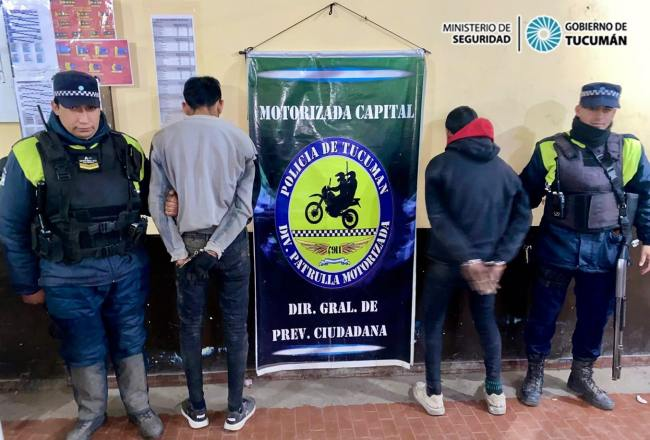 Dos hombres fueron apresados a manos de personal de la División Patrulla Motorizada Capital, durante la noche de este martes en la zona del ex Mercado de Abasto.