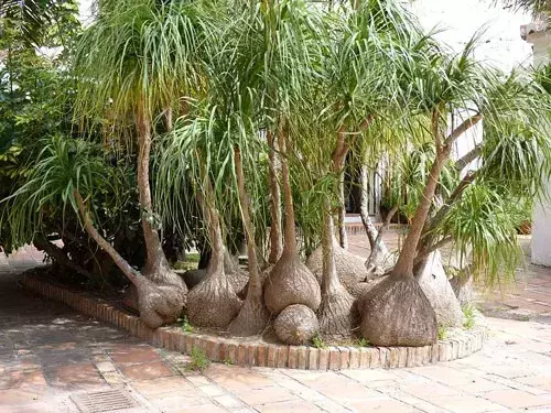 3-Nolina recurvata: es conocida en la Argentina como “pata de elefante”. Según el especialista, “aunque estéticamente parece más bien una palmera, está más emparentada con los cactus, porque en la base del tronco tiene el reservorio de agua”.